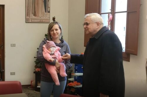 E’ ucraina, ma è anche romagnola. Nata nell’ospedale di Ravenna, ha trascorso i suoi primi mesi di vita al monastero Santa Chiara di Faenza. In questo anno vissuto nelle strutture della Diocesi, che ha dato grande disponibilità all’accoglienza, il 16 settembre 2022 rappresenta una data speciale per Tatiana e per tutte le famiglie ucraine ospitate. In questo giorno è nata Eva, dando una grande gioia alla mamma e un bel segno di speranza a tutti. Oggi Eva ha occhi vispi e attenti, tra le braccia di mamma Tatiana, 33 anni, arrivata in Italia quando già era incinta e con un bimbo di 5 anni. In occasione dell’anno di accoglienza ricevuta a Faenza, il vescovo monsignor Mario Toso, il direttore Caritas don Emanuele Casadio e il sindaco Massimo Isola hanno fatto visita a questa comunità di 22 persone fuggita dalla guerra in Ucraina, in gran parte donne con bambini.