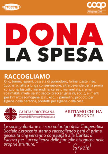 Le socie e i soci volontari della cooperativa Zerocento, in collaborazione con Coop Alleanza 3.0, stanno raccogliendo beni di prima necessità.