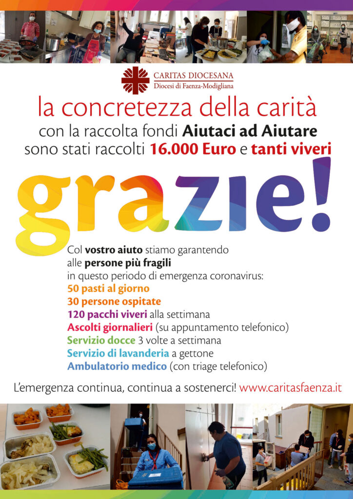 In questo periodo di emergenza sanitaria e sociale stiamo constatando quanto sia diffusa la solidarietà nel nostro territorio, capace di mettere in campo e sperimentare nuove soluzioni per aiutare le persone in condizione di disagio. La Caritas diocesana di Faenza-Modigliana intende ringraziare tutte le persone e le aziende che offrono il proprio sostegno sotto forma di aiuto economico e di beni alimentari, o anche mettendosi personalmente a disposizione col proprio tempo.