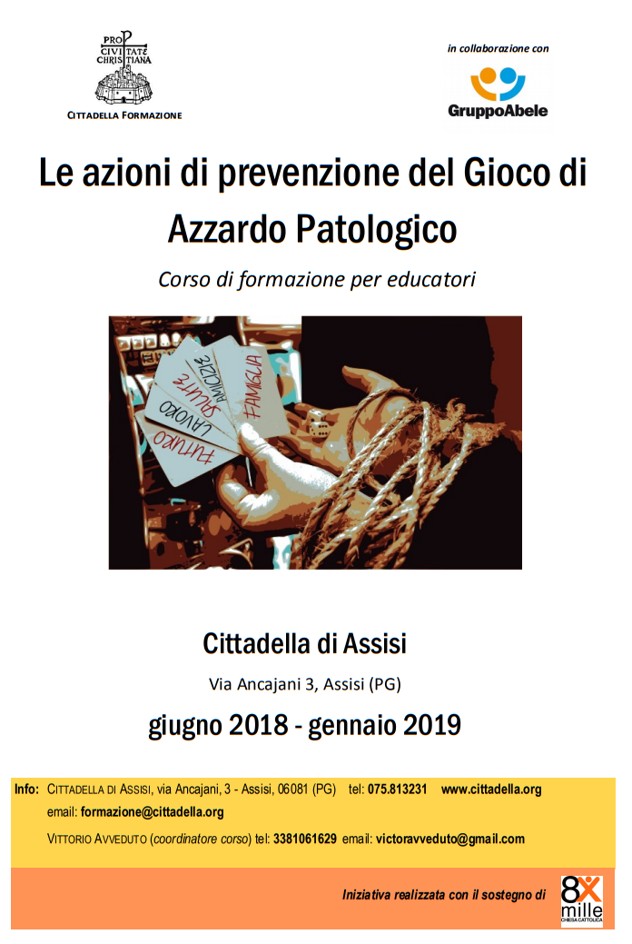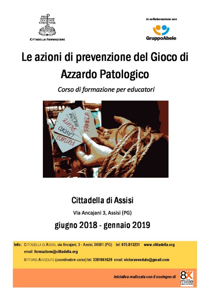 Non mancano iniziative del privato sociale che tendono alla riabilitazione terapeutica di coloro che sono caduti nella rete del GAP (gioco azzardo patologico), mentre sembrano carenti le proposte formative che puntano alla prevenzione e che possono essere maggiormente efficaci.